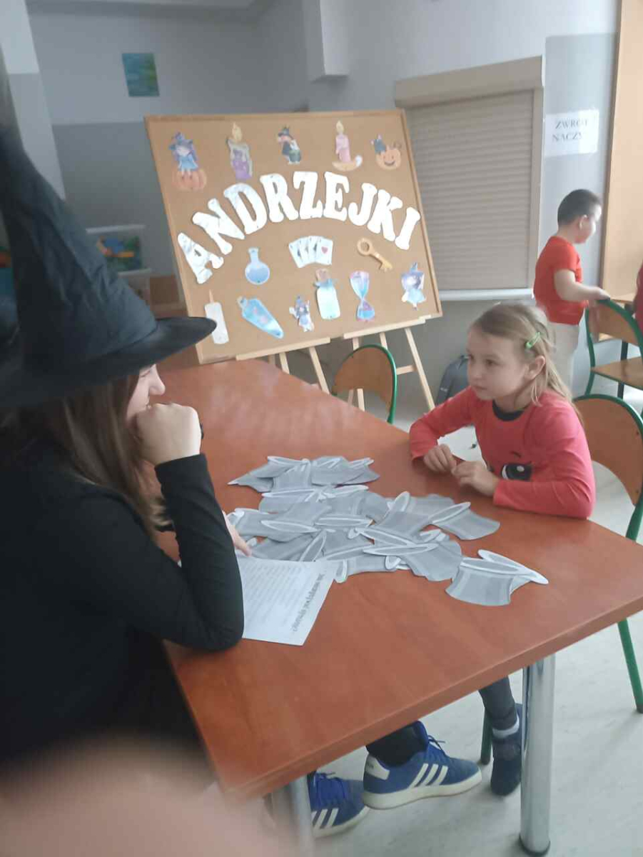 Andrzejki są wspaniałą okazją do dobrej zabawy, a jednocześnie źródłem szacunku dla tradycji i obrzędów ludowych. Wróżby pobudzają wyobraźnię, uczą kreatywności, pozwalają oderwać się od rzeczywistości i przenieść w świat marzeń i fantazji. Uczniowie i nauczyciele, kultywując tradycje związane z wigilią św. Andrzeja, odwiedzili Salon Wróżb. Piękne wróżki i wspaniali wróżowi z magiczną kulą przepowiadały przyszłość. Symbole wiedzy magicznej, lampiony i inne elementy dekoracji dodawały tajemniczości całej scenerii. Wszyscy świetnie się bawili, wierząc, że spełni im się to, co wywróżyli sobie tego magicznego dnia