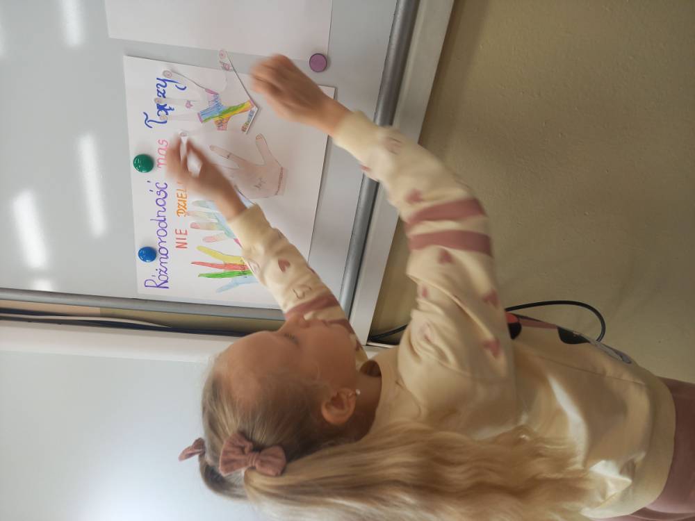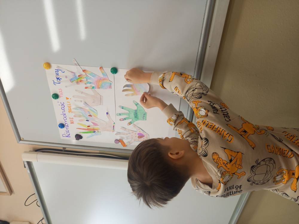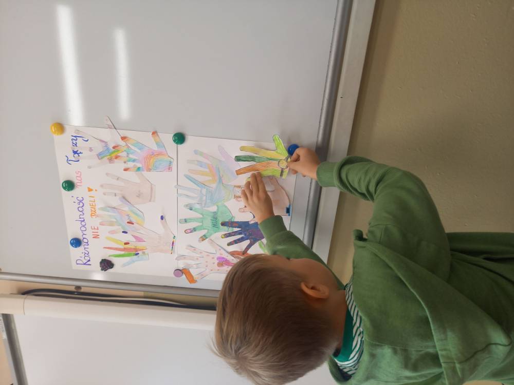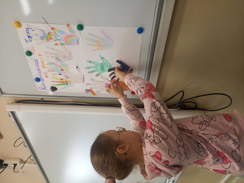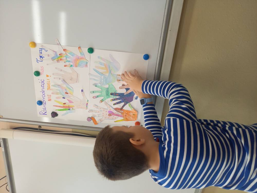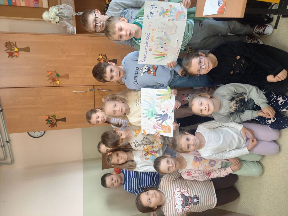 Uczniowie naszej szkoły obchodzili ustanowiony przez Zgromadzenie Ogólne ONZ Międzynarodowy Dzień Tolerancji. Na początku dzieci obejrzały film “Urodziny Maćka, czyli krótka historia o tolerancji”. Podczas rozmowy na temat obejrzanego obrazu uczniowie uznali, że wszyscy jesteśmy inni, różnimy się od siebie, jednak nie jest to przeszkodą, by się wspólnie dobrze bawić i miło spędzać czas. Następnie uczniowie wspólnie wykonali pracę plastyczną. Zajęcia o tolerancji miały na celu kształtowanie prawidłowych zachowań i postaw społecznych, poszanowanie uczuć innych ludzi oraz akceptację odmienności innych ludzi.