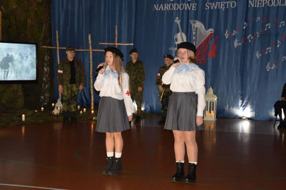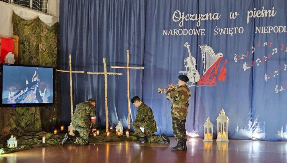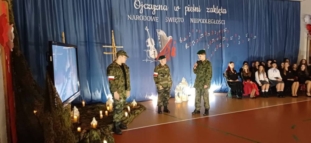 W kolejnych punktach programu pojawiły się pieśni żołnierskie – „Szara piechota”, „Przybyli ułani pod okienko” z choreografią uczniów klasy III oraz „Marsz Pierwszej Kadrowej” z udziałem chłopców w strojach legionistów. Scenka o żołnierzach Piłsudskiego przygotowana przez szóstoklasistów przybliżyła ducha tamtych dni, wypełnionych nadzieją i poświęceniem. Część tę zakończył widowiskowy taniec z flagami symbolizujący radość z odzyskanej wolności.