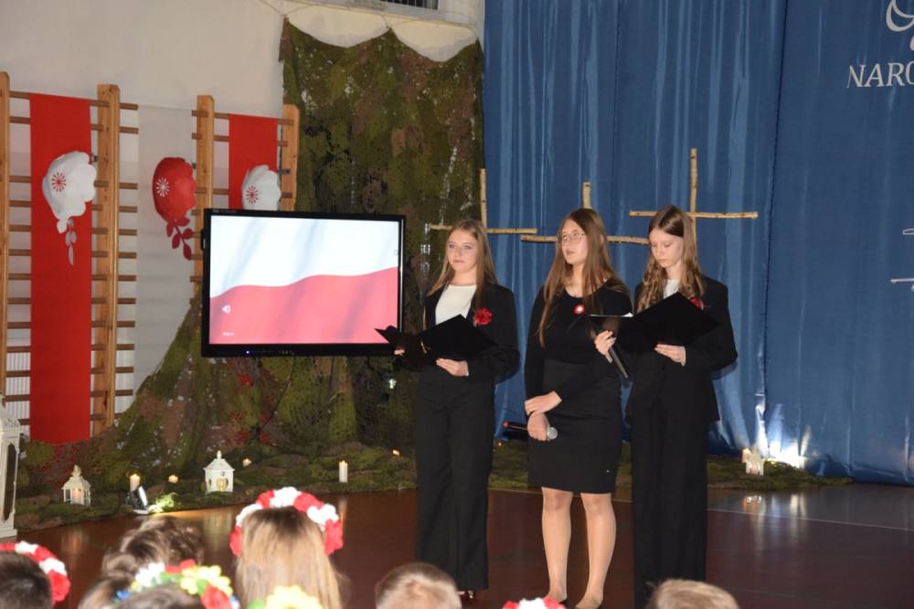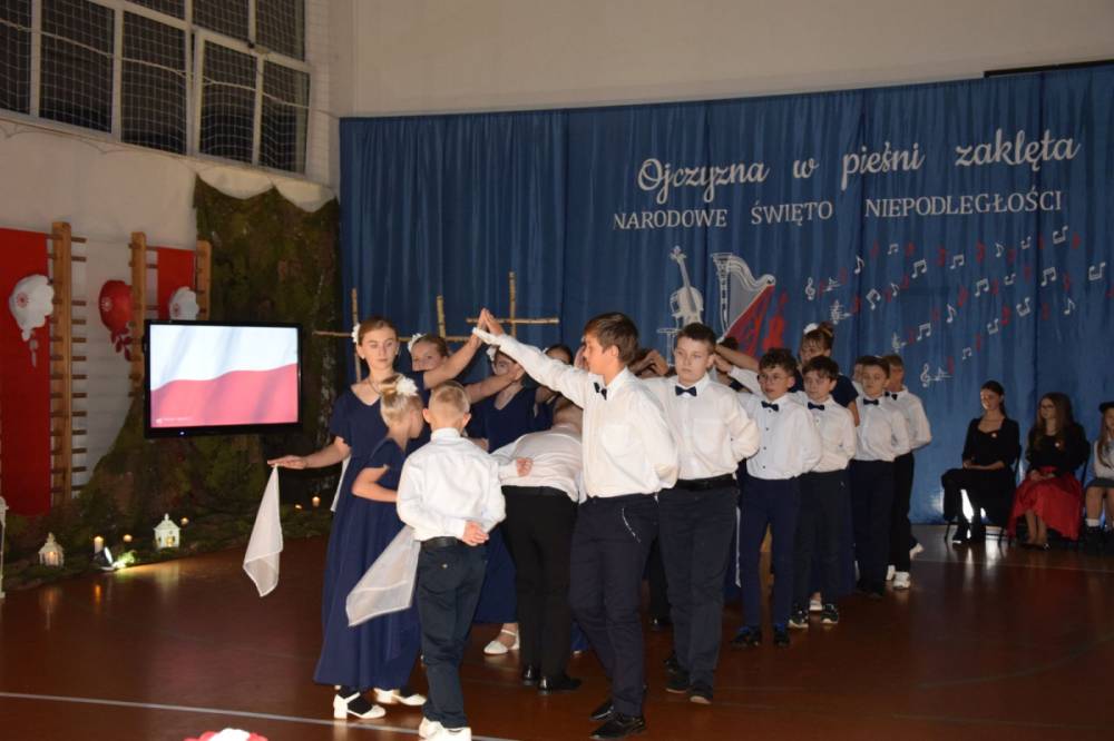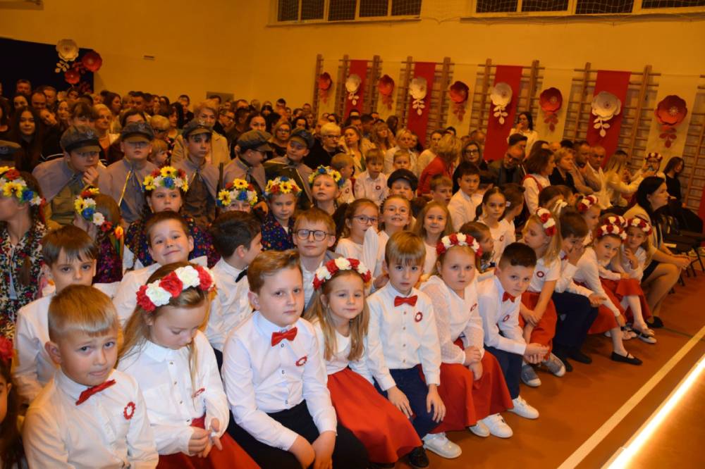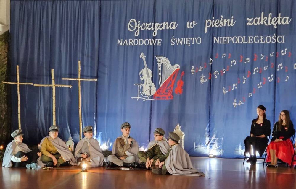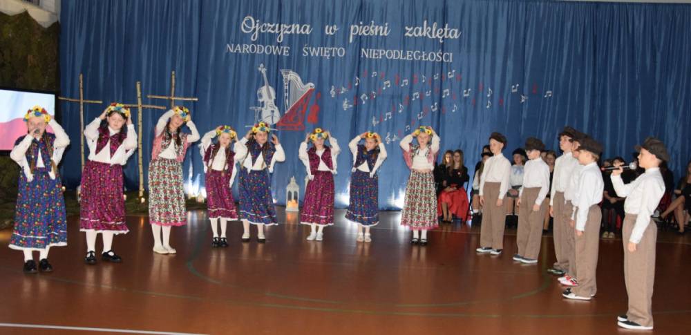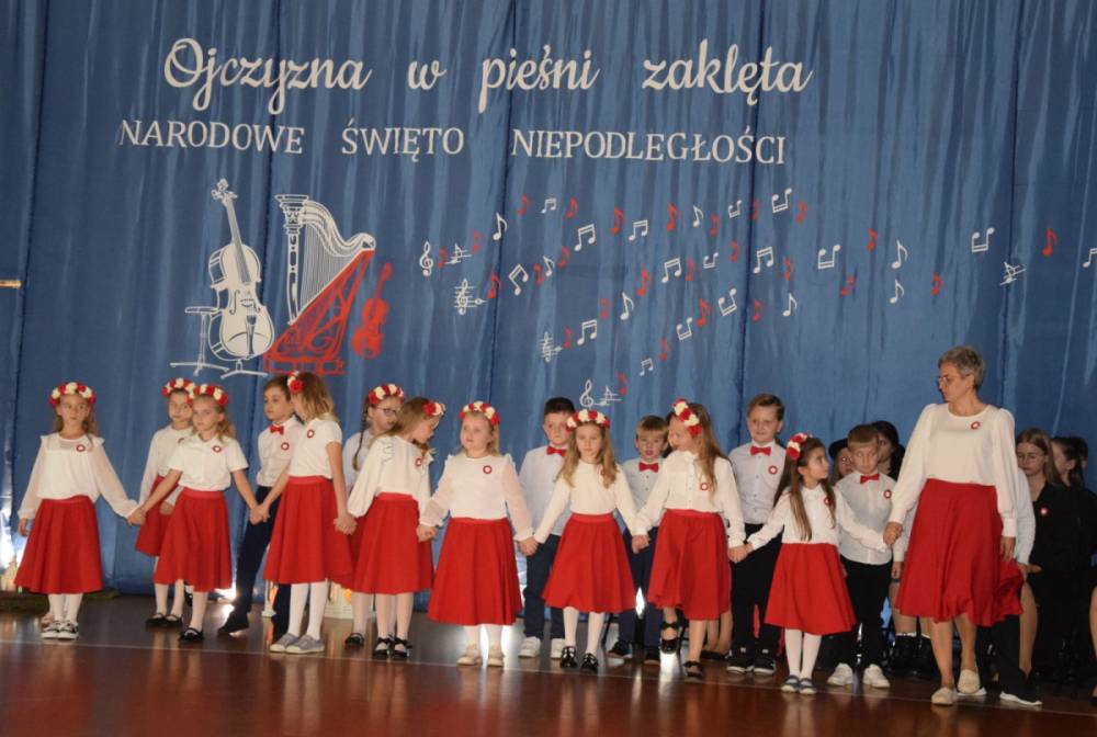 Najmłodsi uczniowie pokazali, że patriotyzm można wyrażać również przez uśmiech, taniec i śpiew. W scence „Głos dzieci” mówili o tym, czym dla nich jest Polska – domem, rodziną, wspomnieniami i językiem. Dzieci wykonały kujawiaka, a następnie zaśpiewały utwory „Kto Ty jesteś? Polak mały” oraz „Co to jest niepodległość”, wzruszając wszystkich prostotą i szczerością swoich słów.