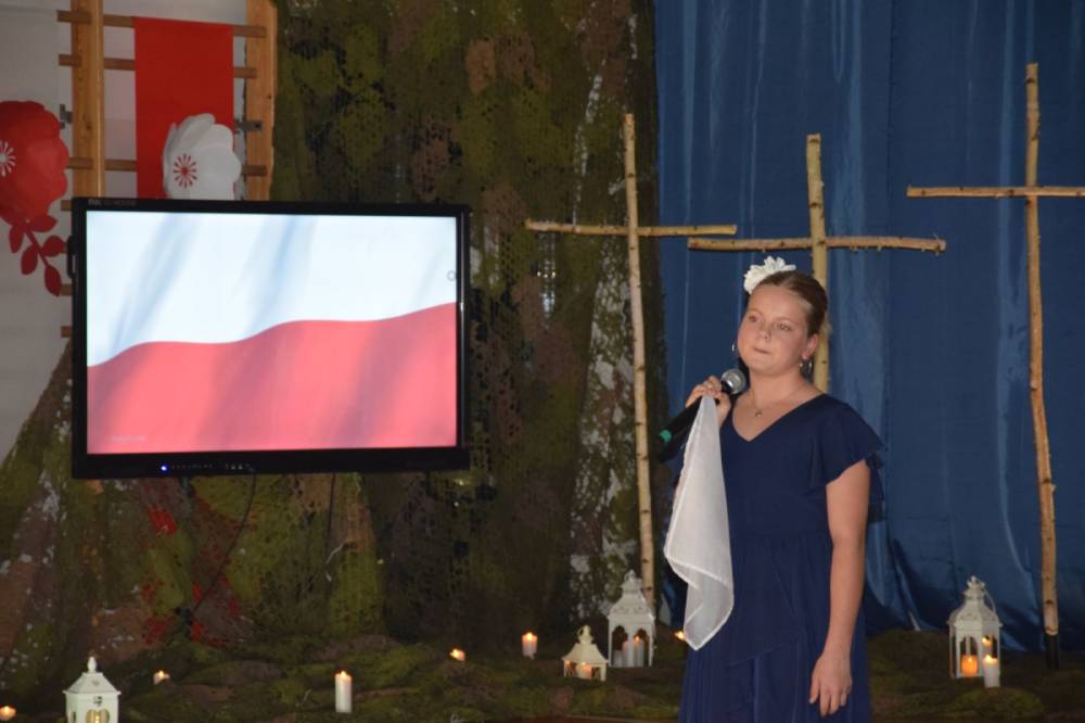 Następnie organizatorzy przenieśli zebranych w czasy II wojny światowej. Uczniowie klasy VII odegrali scenkę partyzancką, ukazującą odwagę i wiarę polskich żołnierzy. Wzruszające solo trąbki w utworze „Śpij kolego”, wykonania pieśni „Wojenko, wojenko” oraz „Biały krzyż” przypomniały o trudnych losach walczących o wolność, a piosenka „Dziewczyna z granatem” oddała dramatyczny klimat powstańczej Warszawy.