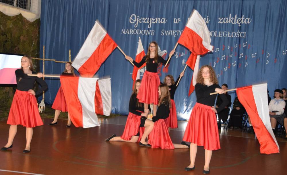 Ostatnia część wieczornicy przeniosła widzów do współczesności. W scence „Patriotyzm dziś” uczniowie mówili o tym, że miłość do Ojczyzny to nie tylko walka, ale także codzienne działania: uczciwość, odpowiedzialność, troska o innych i pamięć o historii. Zabrzmiały również piękne pieśni – „Ojczyzna” Marka Grechuty, „Pytasz mnie”Andrzeja Rosiewicza oraz „Tango na głos, orkiestrę i jeszcze jeden głos”. Uroczystym momentem był polonez w wykonaniu uczniów klas IV i V, który uwydatnił rangę wydarzenia i jego narodowy charakter.