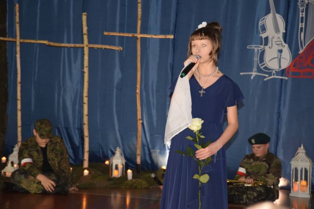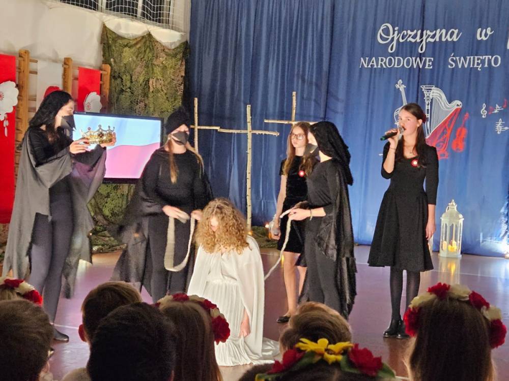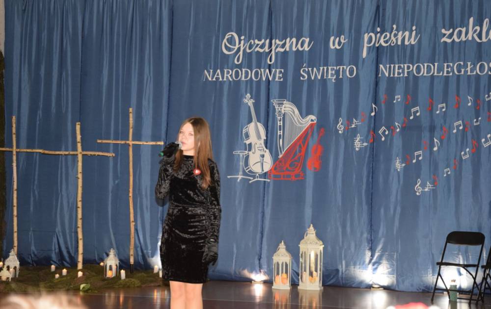 Uroczystość rozpoczęła poruszająca w melodii i treści pieśń patriotyczna “Nie damy się”, po której młodzi artyści ze szkoły w Łosieniu przenieśli widzów w przeszłość, prezentując niezwykły montaż słowno-muzyczny ukazujący drogę Polaków do niepodległości. Wzruszająco zabrzmiał utwór „Żeby Polska była Polską”, po którym uczniowie przypomnieli historię rozbiorów naszej Ojczyzny. Symbolicznym wyrazem tamtych wydarzeń stał się taniec przedstawiający rozbiory i utratę wolności, wykonany do melancholijnej pieśni „Uwięziony ptak nie śpiewa”. Czasy tułactwa i emigracji narodu polskiego pięknie oddał wyśpiewany utwór Cypriana Kamila Norwida “Moja piosnka II”.