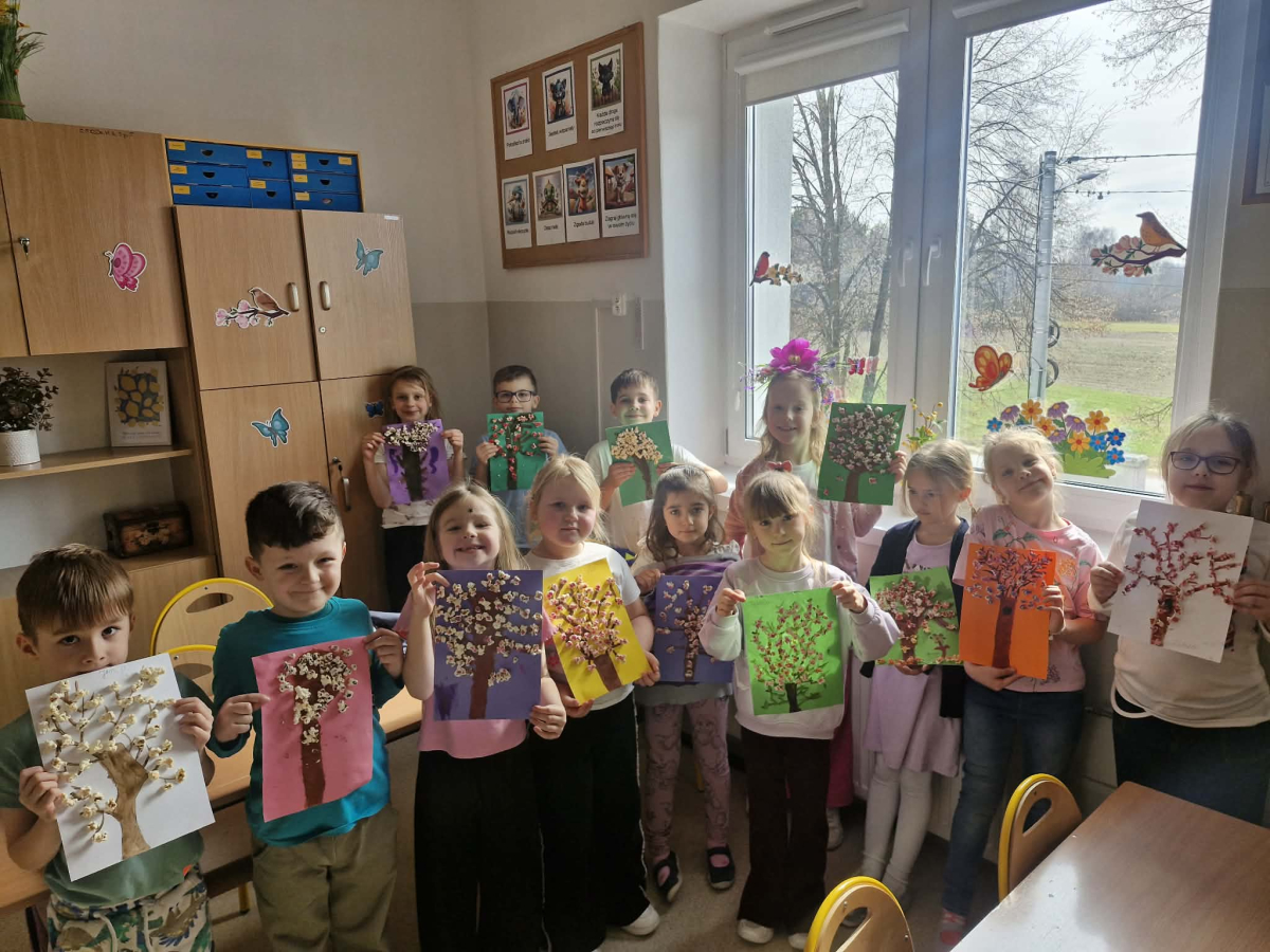 W radosnej atmosferze powitaliśmy długo wyczekiwaną wiosnę! Uczniowie wzięli udział w wyjątkowej aktywności „Wiosenny Power – Start” . Na sali gimnastycznej dzieci pokonywały tor przeszkód, który łączył świetną zabawę z wiedzą o zdrowym odżywianiu i aktywnym stylu życia Po zakończeniu konkurencji przyszedł czas na regenerację – na wszystkich czekały zdrowe przekąski oraz pyszny sok ze świeżych warzyw i owoców Nie zabrakło również emocji sportowych – odbył się turniej FIFA, który dostarczył wielu wrażeń i zdrowej rywalizacji! Najmłodsi uczniowie przywitali wiosnę śpiewem , wykonywali piękne prace plastyczne oraz uczestniczyli w wiosennym spacerze z uroczą Panią Wiosną. To był dzień pełen uśmiechu, energii i pozytywnych emocji!