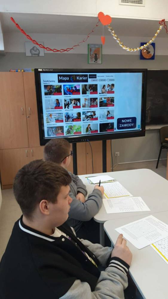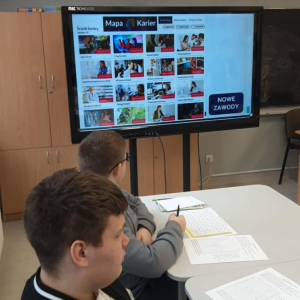 W dniu dzisiejszym uczniowie naszej szkoły z klasy 7 i 8 uczestniczyli w zajęciach z doradztwa zawodowego prowadzonych przez doradców