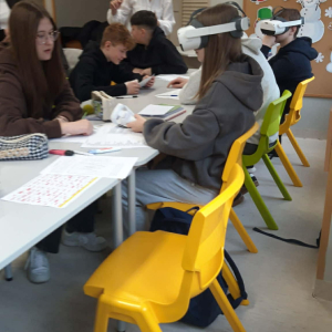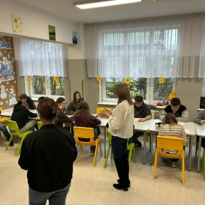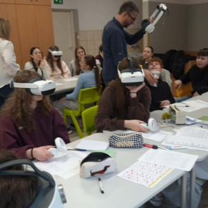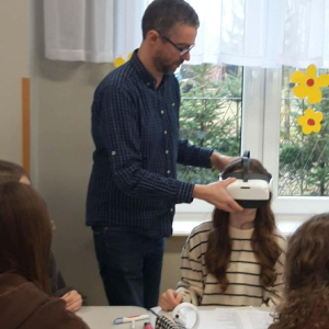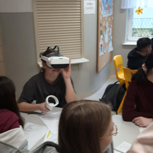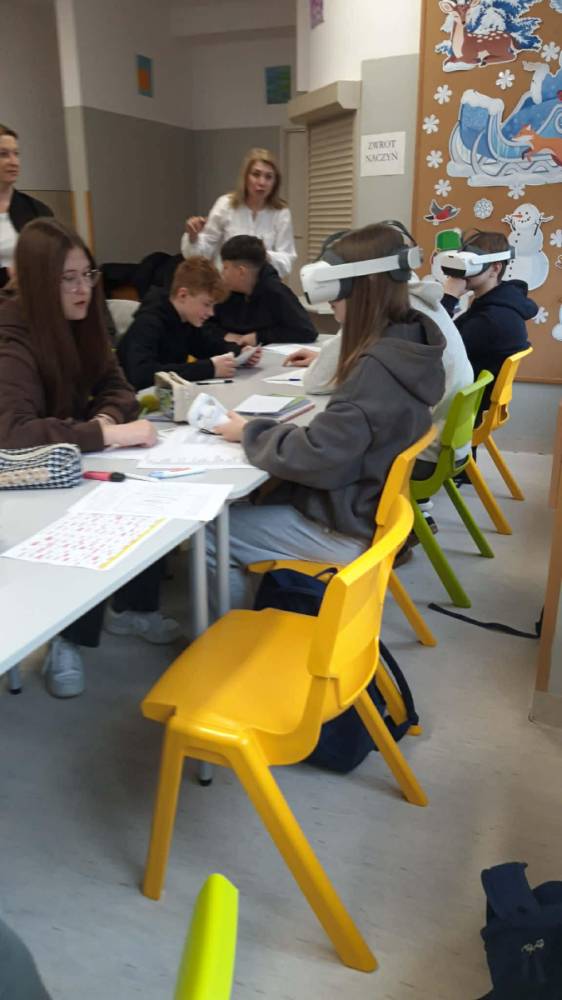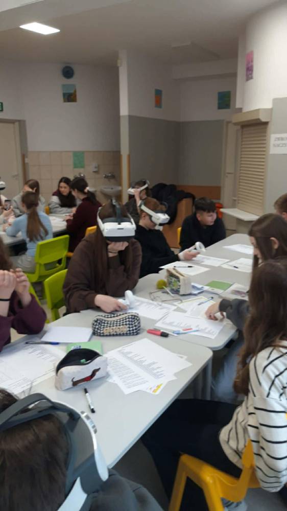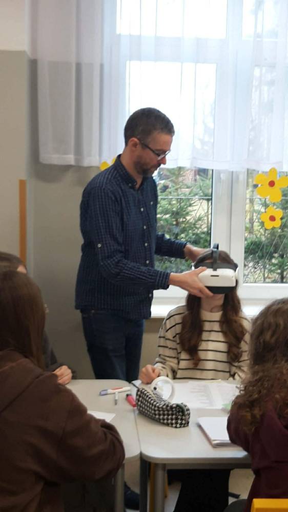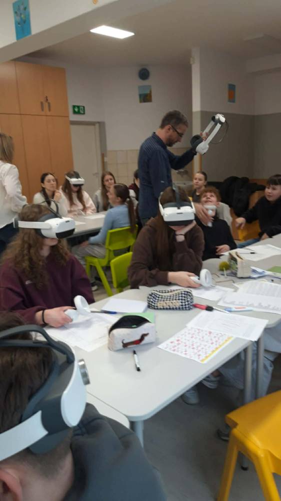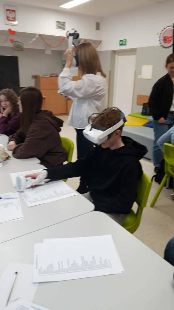 zawodowych z Wojewódzkiego Urzędu Pracy w Kielcach. Zajęcia prowadzone były w oparciu o przygotowany dla uczniów szkół podstawowych program z wykorzystaniem prezentacji pn. „Widzę się w tym zawodzie” oraz testu do badań preferencji i zainteresowań. Dzięki zastosowaniu gogli VR, uczniowie poznali zadania i czynności wykonywane w określonych zawodach i obserwowali przedstawicieli zawodów w naturalnym środowisku pracy. Wszystko to w ramach projektu „Zbudowanie systemu koordynacji i monitorowania regionalnych działań na rzecz kształcenia zawodowego, szkolnictwa wyższego oraz ucznia się przez całe życie, w tym uczenia się dorosłych” Zadanie 2.1.5 Działanie pilotażowe „Fach w ręku – to się opłaca”.